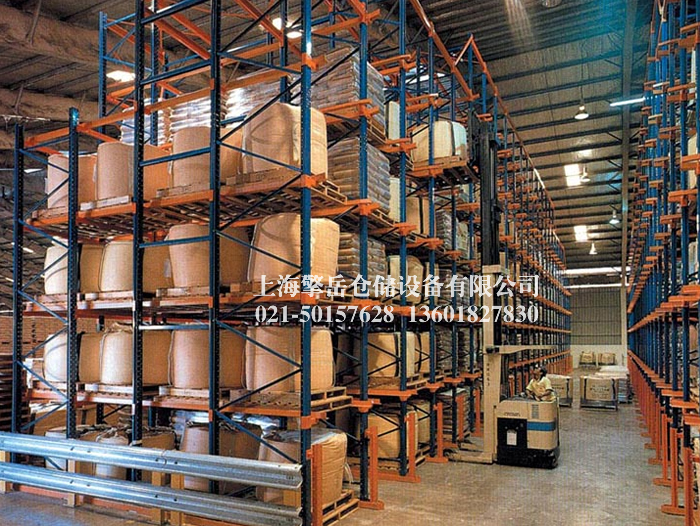 貫通式貨架又稱駛入式貨架,適用于儲存樣少量多,批量作業且選擇性較小的貨物。貨物采用托盤一個接一個按深度方向,存放在支撐導軌上,增大儲存密度和空間利用率。叉車可直接駛入巷道內存取貨物,極為方便。